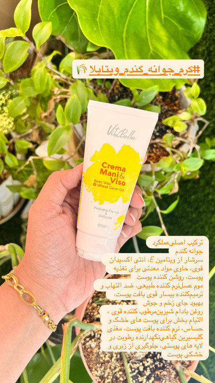 کرم ویژه انواع پوست ها تولید شده و ترکیبات منحصر به فردی مثل جوانه گندم، موم زنبور عسل همراه با رایحه ای تازه و لطیف است. استفاده از کرم دست و صورت ویتابلا پوست را مرطوب می کند و با داشتن مواد مغذی از پوست محافظت کرده و آن را نرم و لطیف می کند.